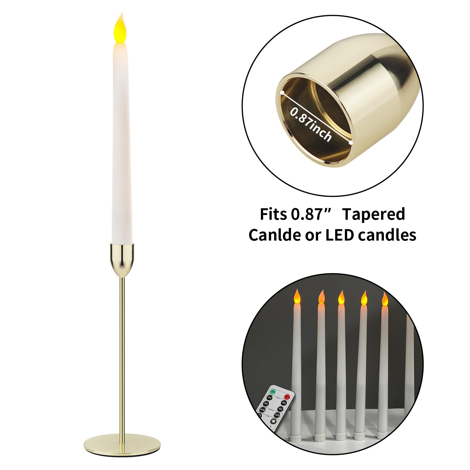 Suitable Candle Size - The inner diameter of the cup of the pillar candle holders is 0.87 inches (22 mm), suitable for standard size tapered candles, 3/4 inch, 7/8 inch candles, and LED cone candles.